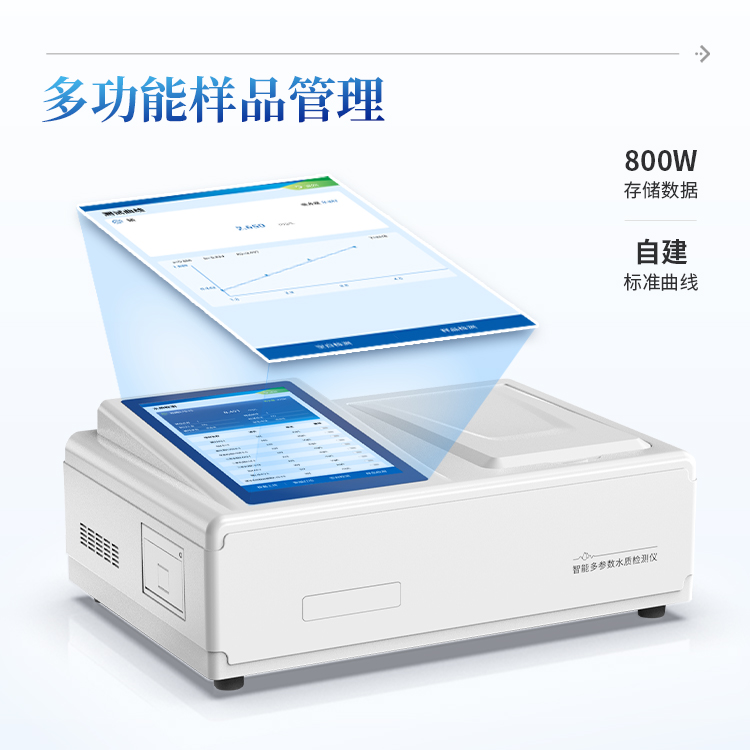 智能多参数水质检测仪参考国家环境标准HJ/T399-2007《水质 化学需氧量的测定 快速消解分光光度法》、HJ535-2009《水质 氨氮的测定 纳氏试剂分光光度法》、HJ671-2013《水质 总磷的测定 钼酸铵分光光度法》和HJ 636-2012 《水质 总氮的测定 碱性过硫酸钾消解紫外分光光度法》标准研发设计,可快速测定水体中COD、氨氮、总磷、总氮等几十种浓度指标。兼具智能数据分析功能,图表、列表显示数据,分析一目了然;10.1英寸高清晰度彩色液晶触摸显示屏,androids智能操作系统,中文显示界面,中英文键盘,人性化操作,搭配24孔智能双温区消解仪,可实现户外快速检测,使用更简单。